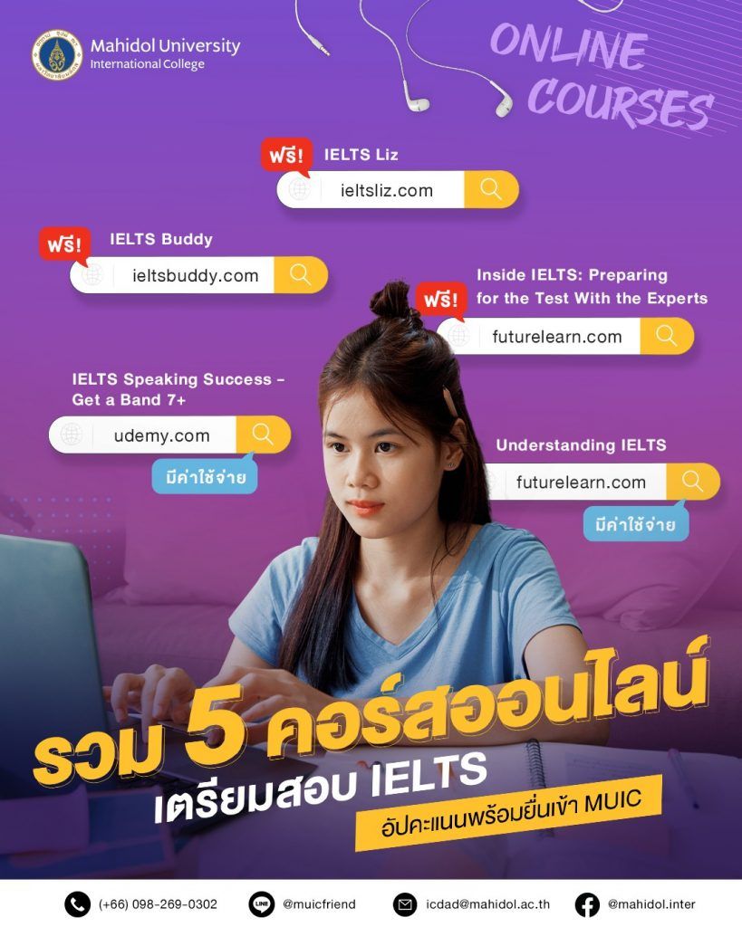 คนไหนที่อยากสมัครเข้า MUIC คะแนน IELTS ก็เป็นอีกส่วนที่จะช่วยเพิ่มโอกาสให้ยื่นคะแนนสมัคร เพราะฉะนั้น ใครที่กำลังมองหาตัวช่วยเพื่ออัพคะแนนให้สูงขึ้น เราก็มีคอร์สออนไลน์ดีๆ 5 คอร์สมาแชร์ต่อแล้วที่นี่!
