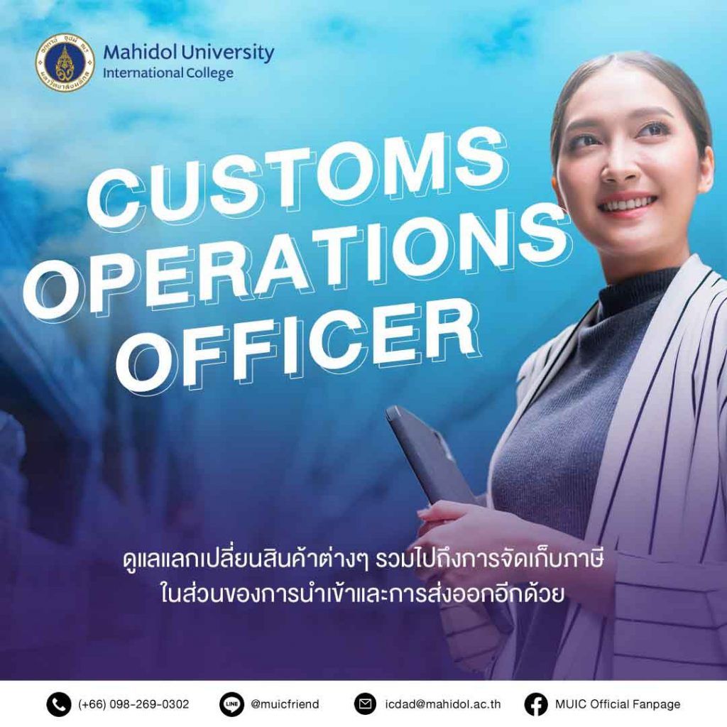 International Business ที่ MUIC ที่นอกจากจะมีความรู้พื้นฐานที่ตอบโจทย์การทำงานจริงในตลาดแรงงานแล้ว ยังมี Soft Skill ที่โดดเด่นในด้านของการ Communication หรือการสื่อสารกับผู้คน รวมไปถึงการปรับตัวเข้ากับสถานการณ์ต่างๆ ได้อย่างลื่นไหล จึงทำให้น้องๆ International Business สามารถทำงานในอาชีพ Customs Operations Officer ได้สบายและเหมาะสมอย่างแน่นอน