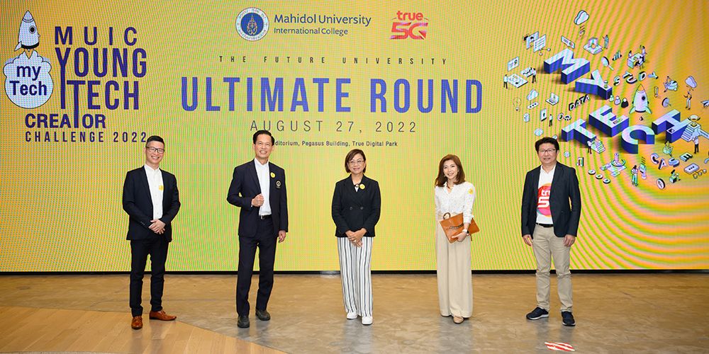 เมื่อวันที่ 27 สิงหาคมที่ผ่านมา ศาสตราจารย์แพทย์หญิงจุฬธิดา โฉมฉาย คณบดีวิทยาลัยนานาชาติ มหาวิทยาลัยมหิดล เป็นประธานในการแข่งขันรอบชิงชนะเลิศโครงการ MUIC - Young Tech Creator (myTech) Challenge 2022 ภายใต้แนวความคิด “The Future University” โดยมี ดร.พัฒนศักดิ์ มงคลวัฒน์ คณบดีคณะเทคโนโลยีสารสนเทศและการสื่อสาร มหาวิทยาลัยมหิดลพร้อมด้วยผู้บริหาร แขกผู้มีเกียรติ ทีมเยาวชนนักเทคโนโลยีสร้างสรรค์ 5 ทีม เข้าร่วมในกิจกรรมครั้งนี้ ณ True Digital Park สุขุมวิท 101